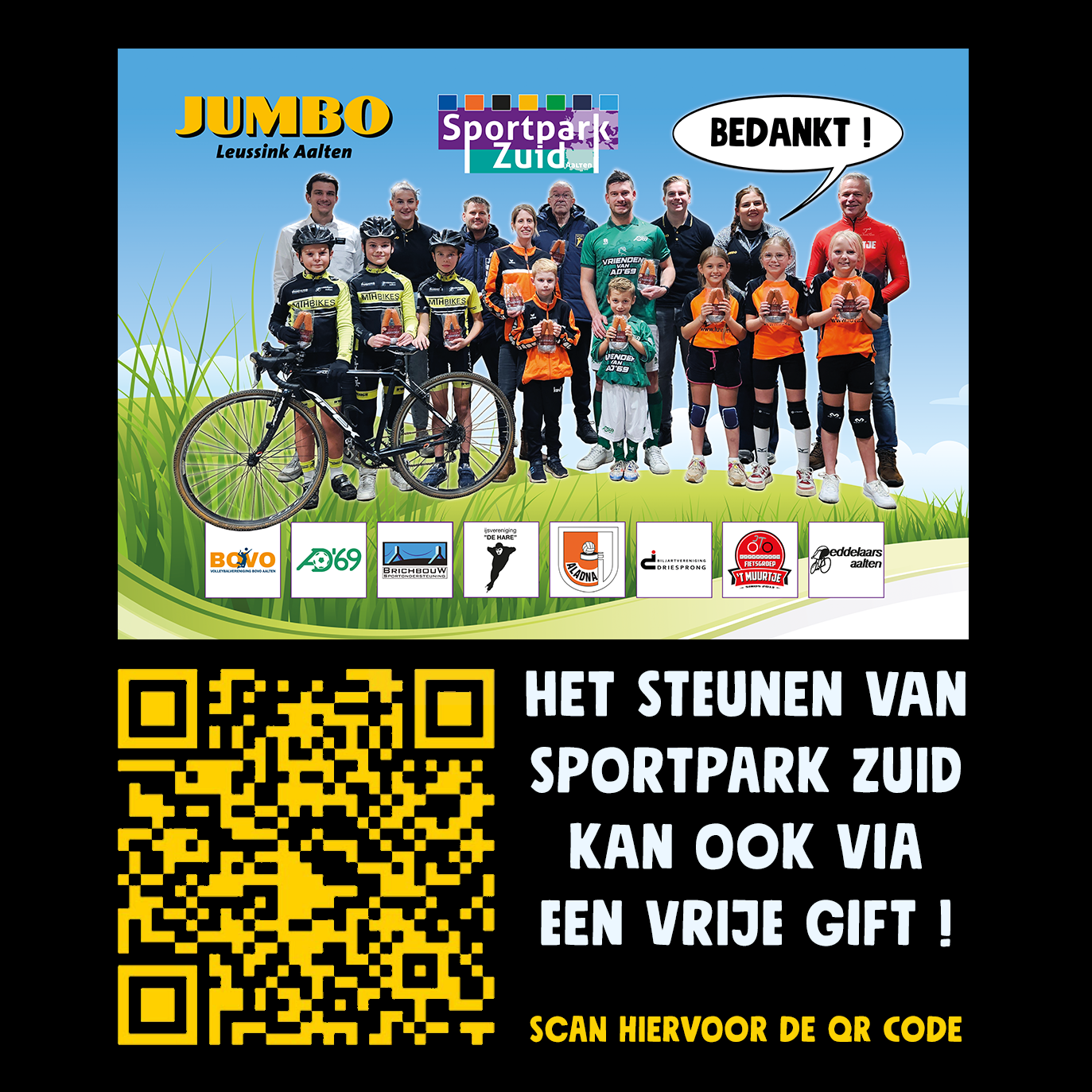 Steun ons dan door onderstaande QR-code te scannen en een vrije gift te geven voor ons Sportpark en de verenigingen.